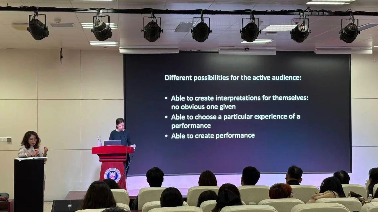 讲座中,Sheil教授深入剖析了表演研究这一跨学科领域的起源与发展,主张突破舞台艺术的局限,将日常生活、仪式、体育、身份实践等多元形式纳入“表演”的研究范畴。她进一步阐释了表演研究对音乐学和艺术研究的深刻影响,为在场师生打开了跨学科研究的全新视野。